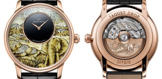 The new Petite Heure Minute, a favourite canvas for expression and artistic innovation for Jaquet Droz depicts an elephant moving across a landscape of...